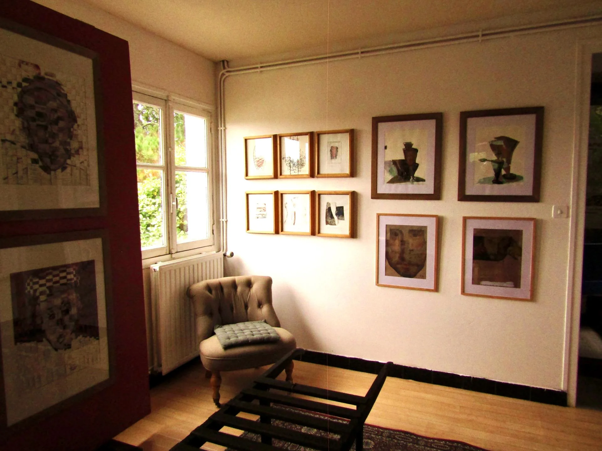 l'atelier Ô perché, en haut de la rue Guezengar, il faut y monter à pied au départ de la rue Charles Peguy et virer vigoureusement à babord dans l'impasse qui porte le nom de Daniel Guezengar, écrivain poête audiernais.